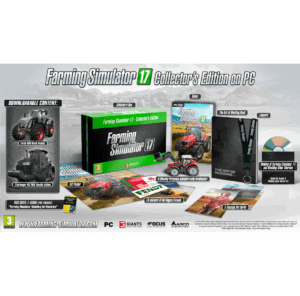 Farming Simulator 2017: Collector’s Edition for PC includes:– Farming Simulator 2017 game– ‘The Art of Modding’ Book– A Massey Ferguson miniature with frontloader– A2 Poster– 10 stickers of the biggest brands– 5 Concept Art Cards– Lanyard– Making of Farming Simulator 17 and Modding Video Tutorials– E-Book (PDF Format) ‘Farming Simulator Modding For Dummies’Welcome to the greatest farming simulation game ever made!Farming Simulator 17 invites you into the challenging world of a modern day farmer. Take on all the challenges of farming life, including animal husbandry, crops, sales, and woodcutting. You decide how you want to manage and grow your farm in a huge, open world! -